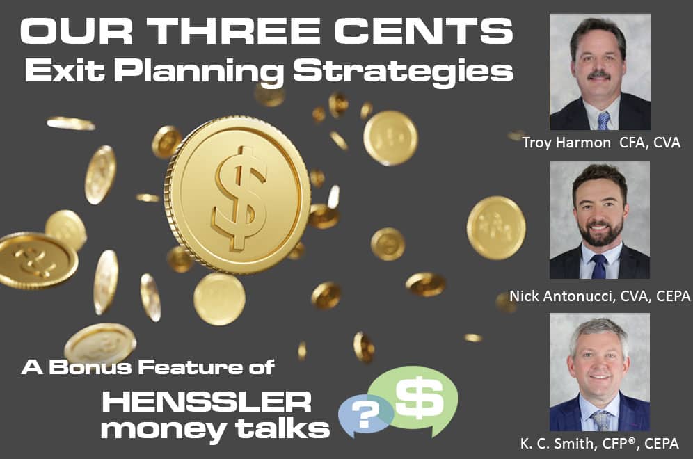 “Our Three Cents” is a spinoff podcast of “Money Talks,” focusing on good business strategies, business valuations, and business exit planning. “Our Three Cents” is brought to you by Henssler Financial.
